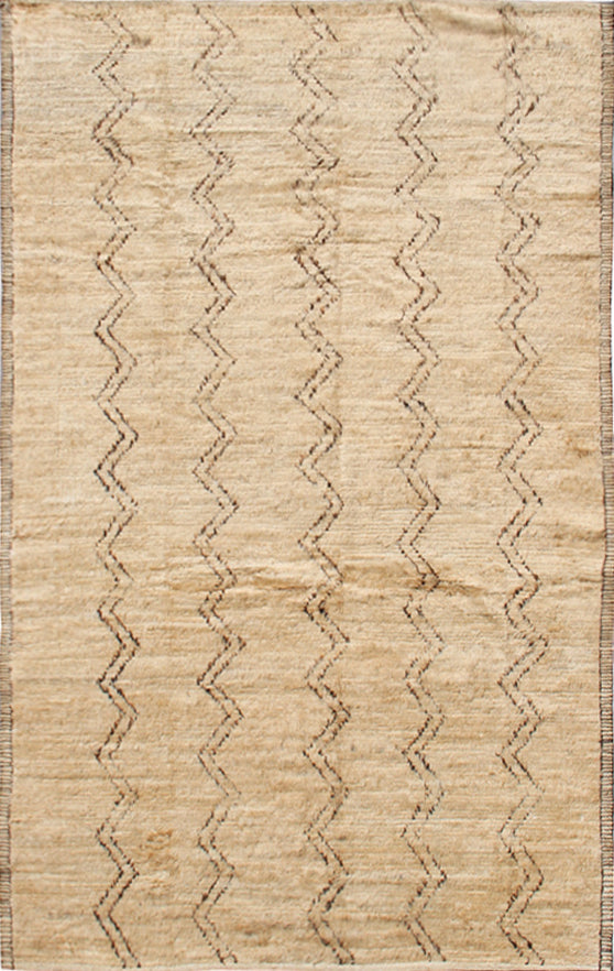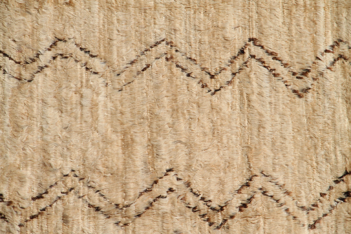 In a soothing beige hue with intricate brown zig-zag lines, this rug seamlessly blends contemporary modern style. Crafted from premium wool, it offers a soft and inviting texture that will enhance the comfort of any room. Versatile and stylish, it's a stunning addition to your living room, bedroom, or any space in your home.