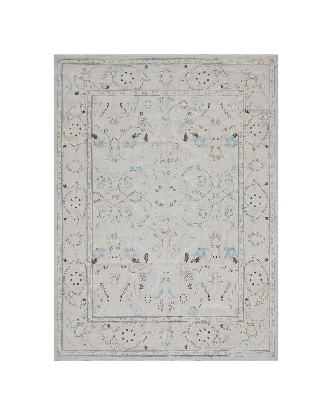 Discover the unparalleled craftsmanship of our Ariana Luxury Collection, featuring hand-knotted Persian rugs with a stunning Polonaise design. The Ivory Blue Brown Rug, expertly crafted by skilled Turkman women weavers in Afghanistan, creates a serene and calming atmosphere with its soft color palette of robin egg blue, gold, cream, and brown. Its short pile and sleek design make it a perfect luxury addition to any room.