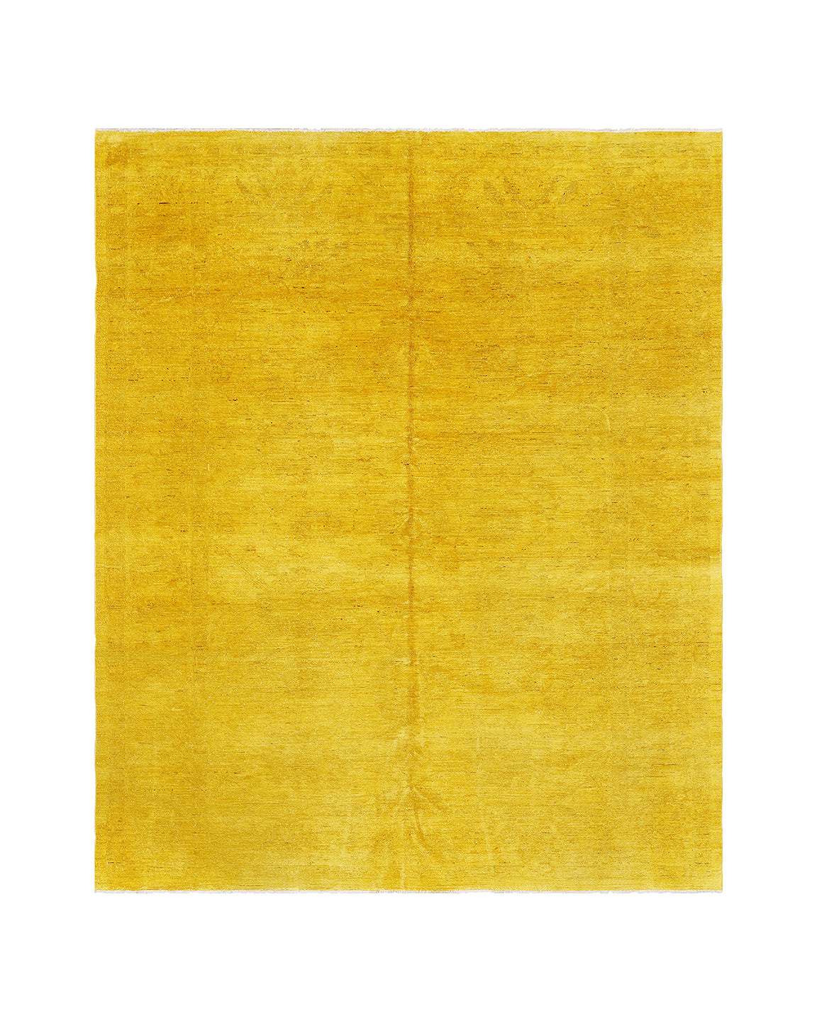 This stunning hand-knotted rug reimagines traditional Persian design with a vibrant, overdyed yellow palette. Featuring a beautifully faded pattern, it blends timeless craftsmanship with a modern aesthetic. Perfect as a statement piece, this rug adds warmth, character, and a touch of luxury to any interior space. Its durable construction ensures it remains a centerpiece for years to come.