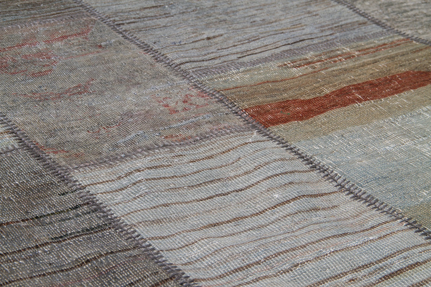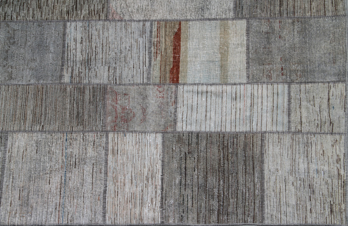 Our gray patchwork rug is a masterpiece of craftsmanship and design. Hand-knotted with meticulous care from wool, it's a unique composition of different rugs skillfully cut and seamlessly sewn together, creating a distinct and artistic patchwork pattern. This rug promises to be a captivating addition to any room, adding an element of individuality and character to your home decor. With its versatile and sophisticated gray tones, it harmonizes with various interior styles, making it an ideal choice for any space.