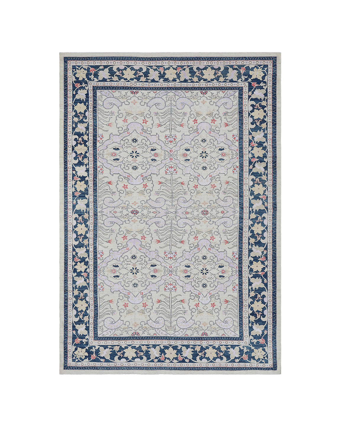 Transform your space with the timeless elegance of the Ariana Transitional Wool Area Rug. Featuring a stunning light field with a blue border and a delicate floral pattern, this hand-knotted masterpiece is crafted by skilled Turkman women, bringing a touch of traditional craftsmanship into your home. With its short pile for easy maintenance and luxurious feel, this rug seamlessly blends into both modern and classic interiors, adding warmth and sophistication to any room. Elevate your décor today with this exquisite, one-of-a-kind rug!
