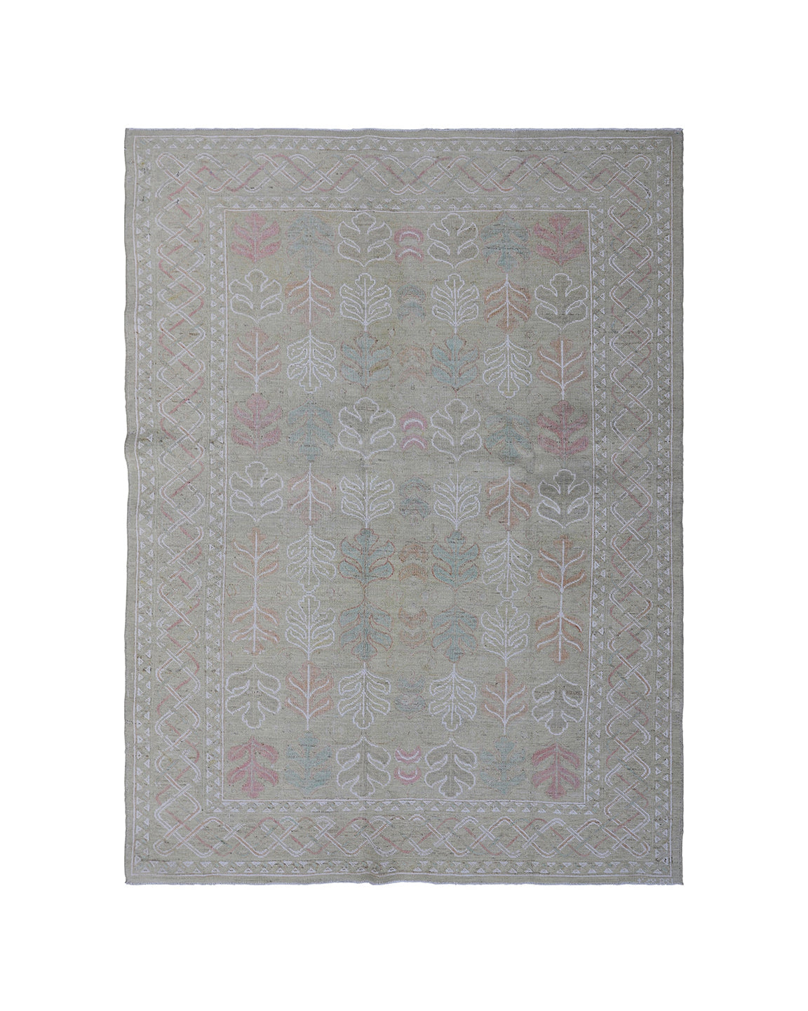 Bring understated elegance to your home with this Ariana Transitional Leaf Design Rug. Hand-knotted from premium wool on cotton, it features a graceful leaf motif in soft, muted colors, making it a versatile addition to any décor. The short pile ensures easy maintenance while providing a refined texture underfoot.