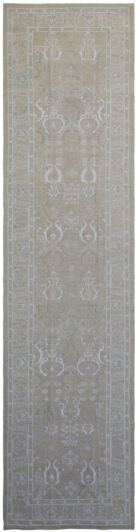 4'x17' Ariana Tabriz Design Ivory White Blue Tan Runner Rug