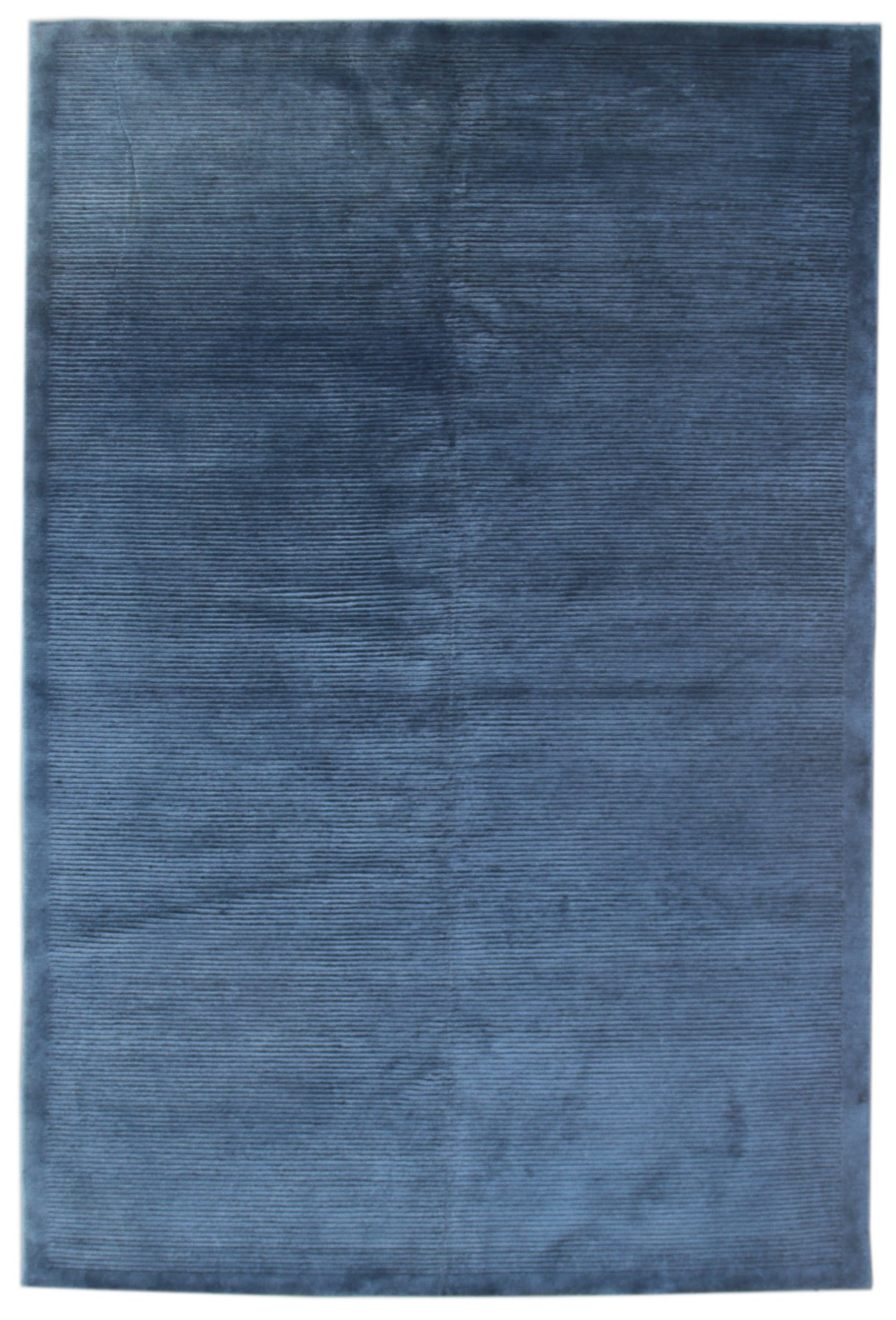 This striking Indo-Tibetan rug is hand-knotted using traditional techniques and features a refined cut and loop pile construction that creates depth, contrast, and texture. The design pairs a rich navy loop pile with a contrasting black cut pile, producing a bold yet sophisticated modern look. Crafted from premium fibers, this rug is one of a kind, offering exclusivity and artisanal character.