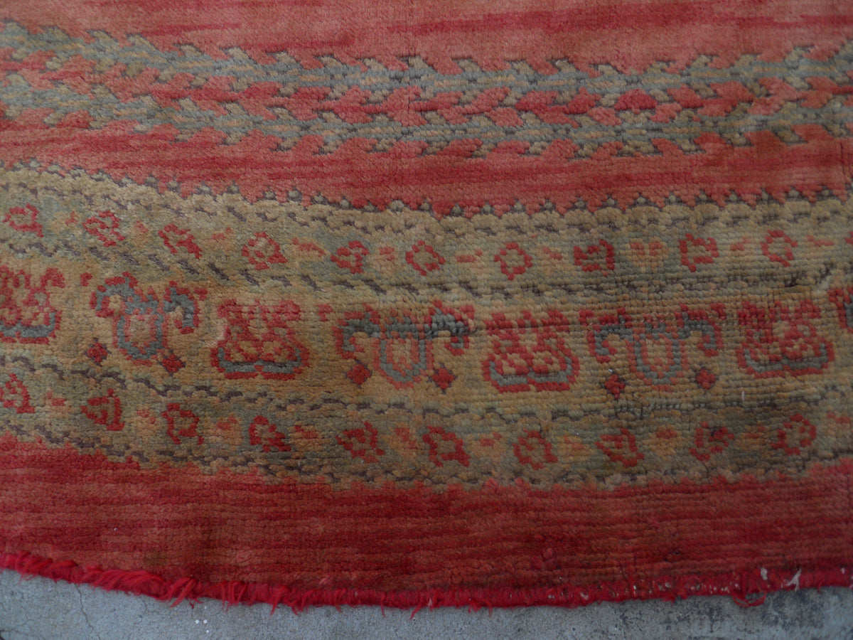 18.06 x 18.06 One Of A Kind Vintage Antique Orange Red Gold European Savonnerie Round Rug