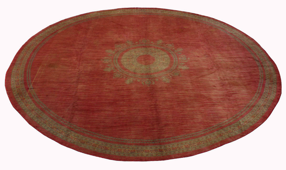 19'x19' Round Orange Red Gold Vintage Antique European Savonnerie Round Rug