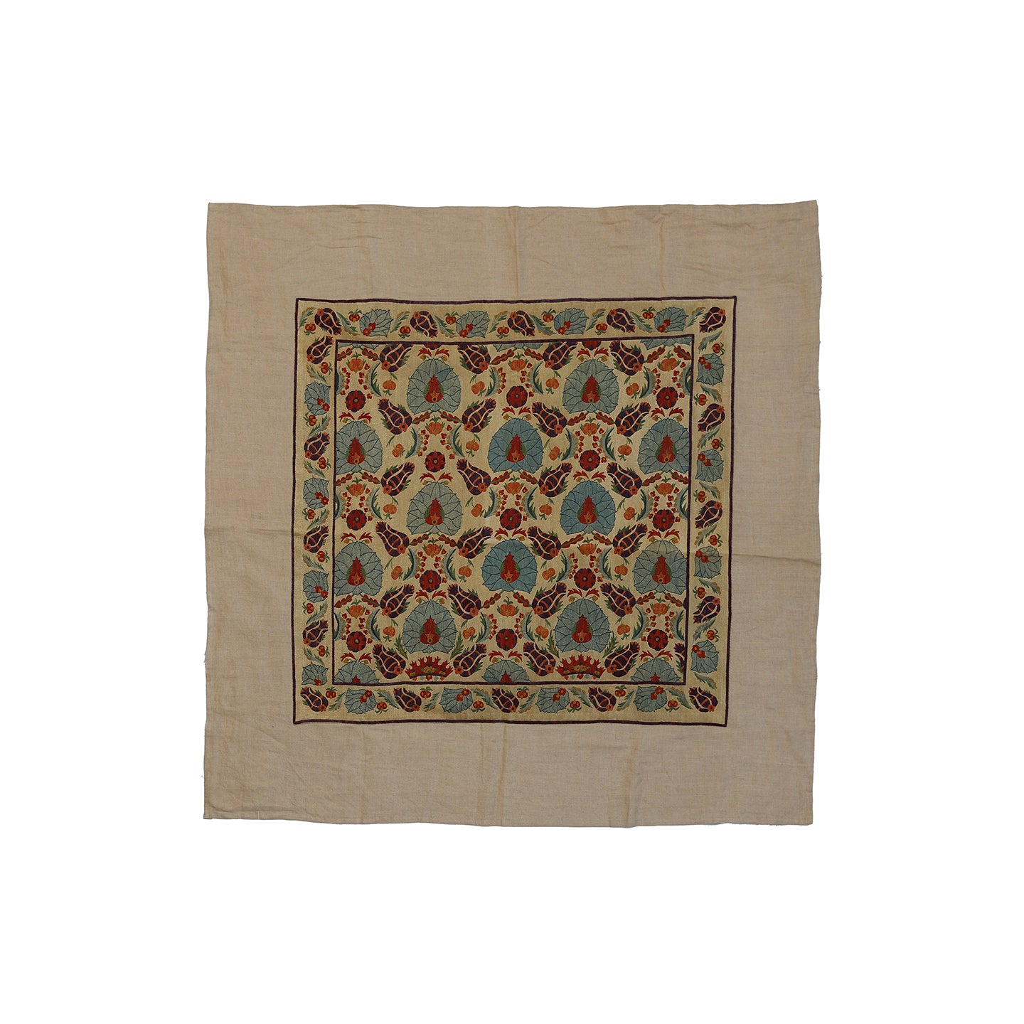 Square Hand-Embroidered Uzbek Suzani Pillow