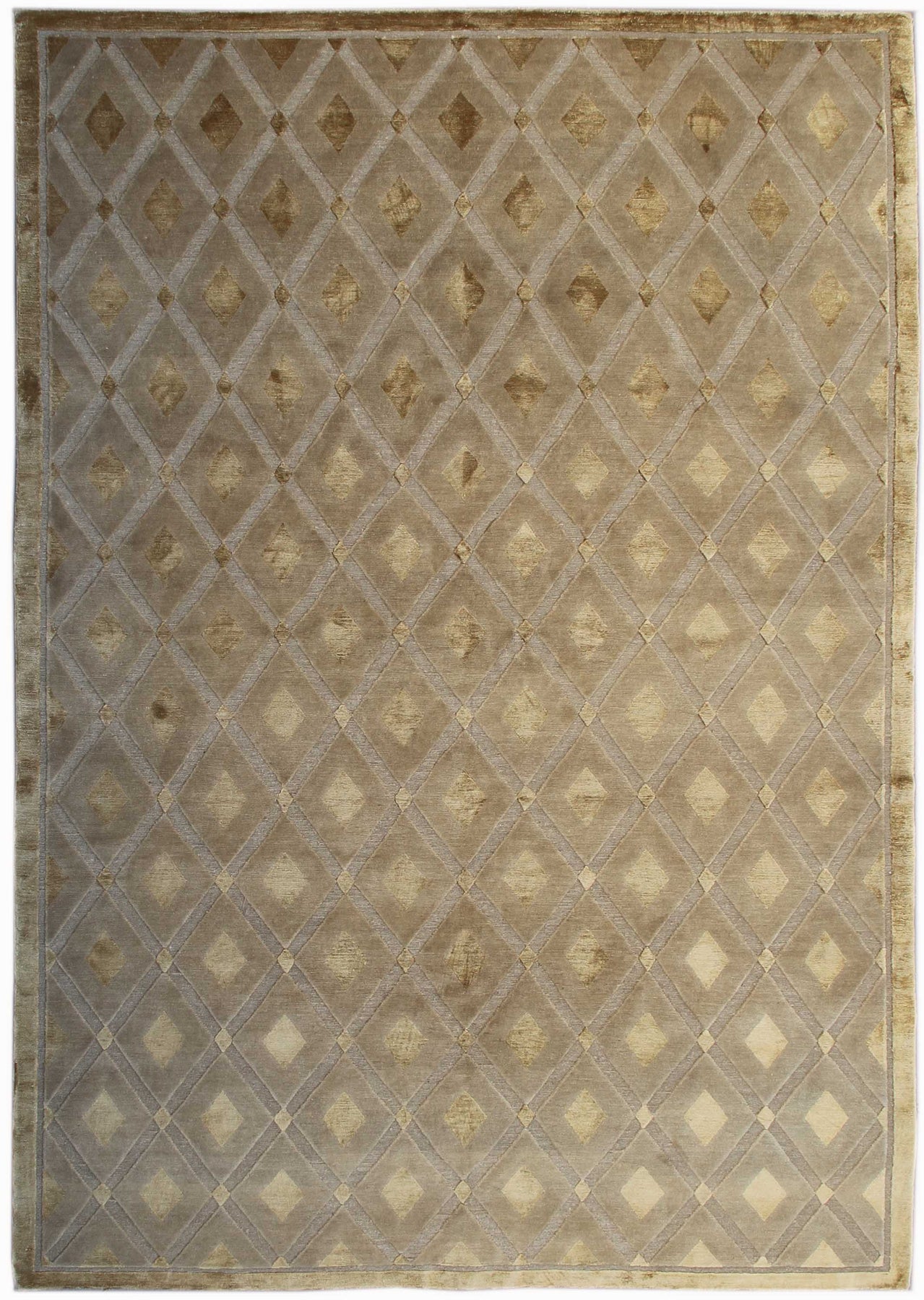 From the Ariana Modern Collection, this hand-knotted rug is a textural masterpiece, woven in Nepal by skilled Tibetan women weavers using real silk and wool. The bold geometric design is elevated by a high-low pile structure, giving the rug a sculptural, three-dimensional effect that plays with light and shadow.