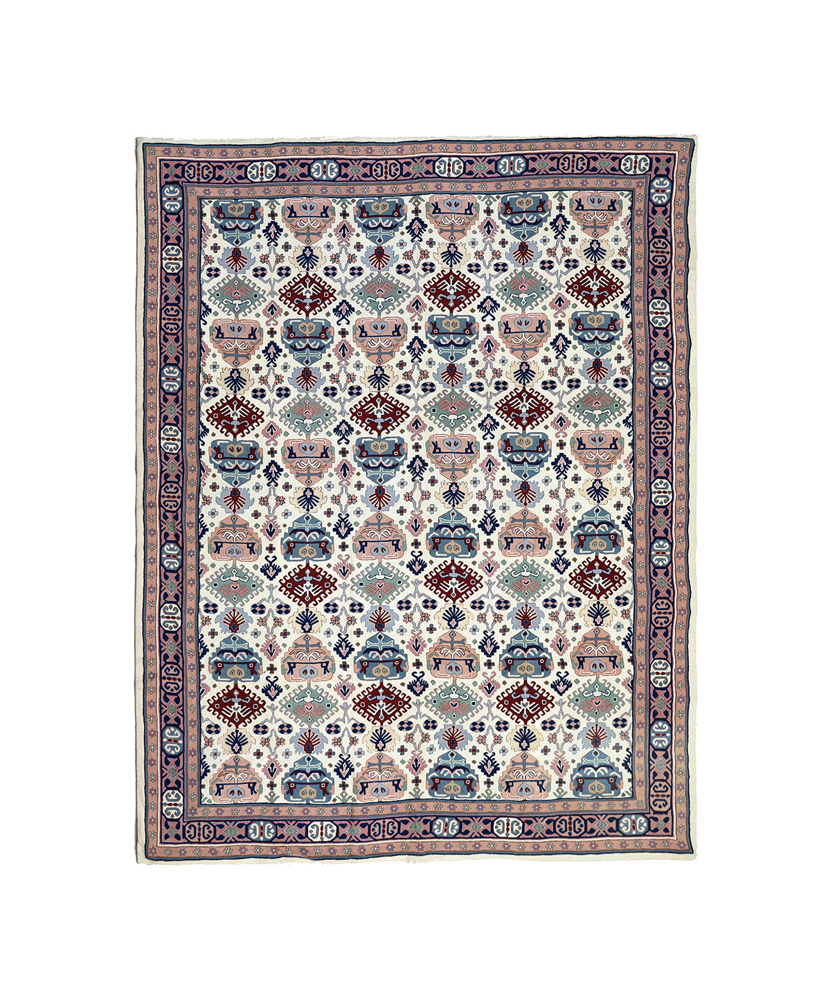 9'x12' Vintage 1980s Indian Chainstitch Rug – Geometric Pastel Caucasian Design