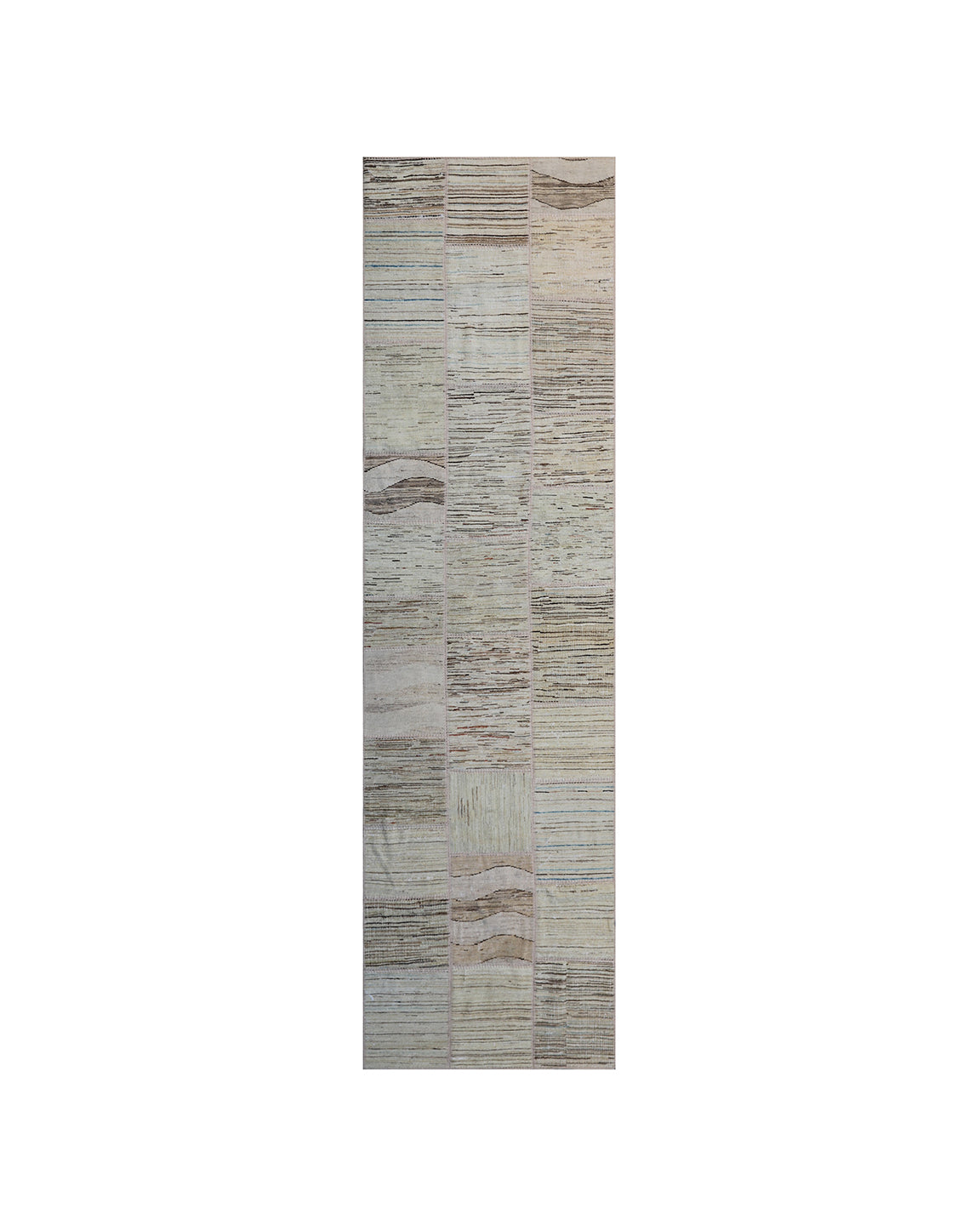 Hand-knotted Wool Runner. Soft Colors. Ariana patchwork Collection. Hand Made In Afghanistan.