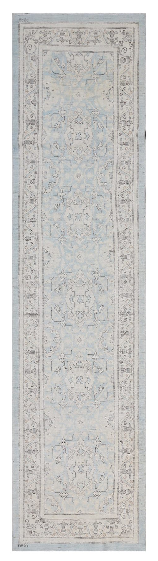 3'x10' Ariana Traditional Agra Geometric Soft Blue Ivory Runner Wool Rug