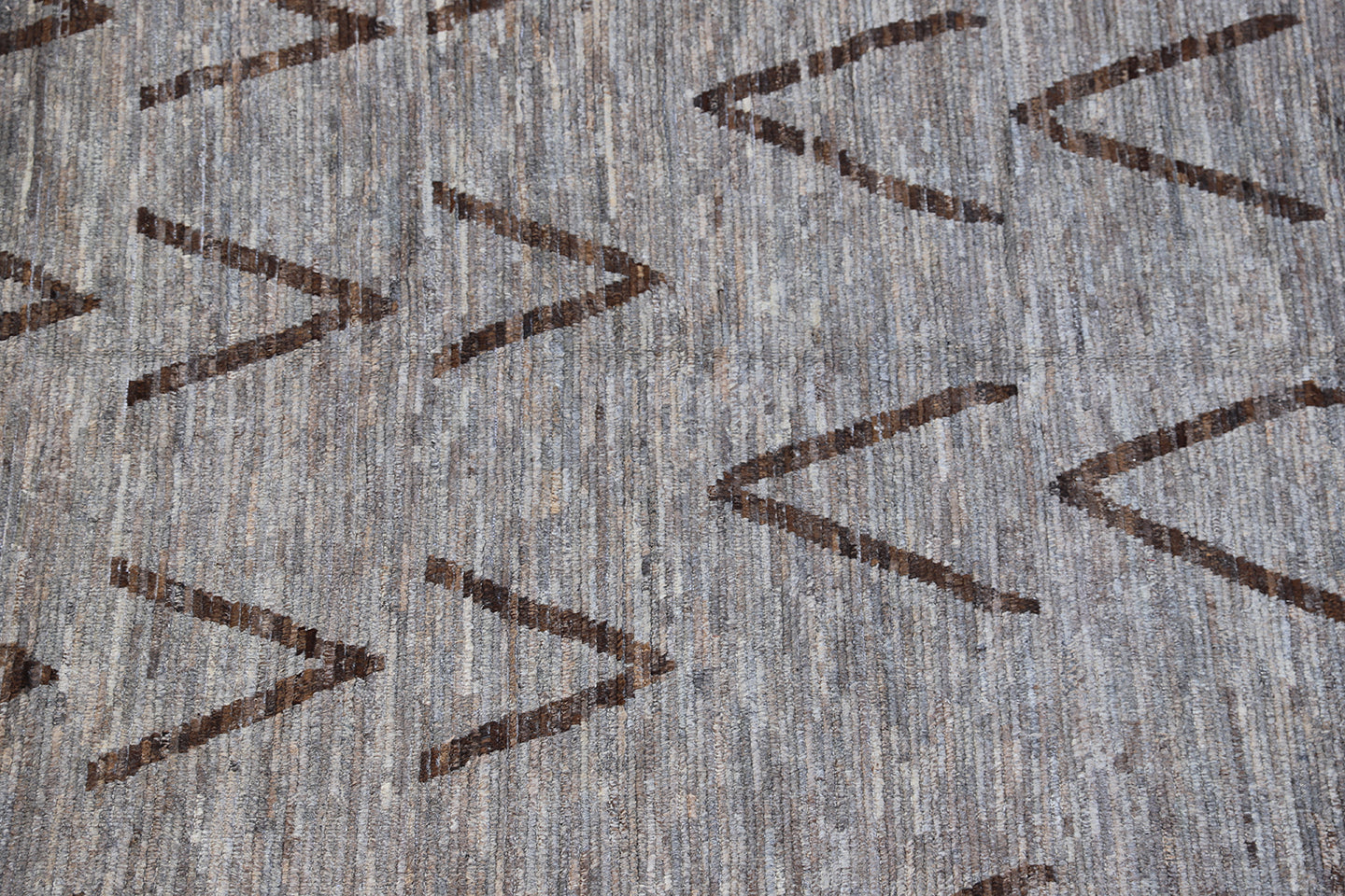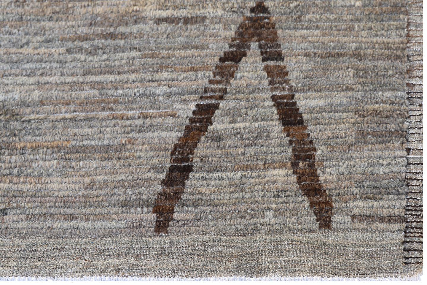 Elevate your space with this Ariana Moroccan Style Barchi rug, featuring a timeless V-shape pattern in warm grey and brown tones. The geometric design adds visual interest while maintaining a calm, earthy balance, ideal for modern, transitional, or bohemian interiors. Its hand-crafted wool pile offers a soft, comfortable feel, while the cotton foundation ensures durability and long-lasting structure.