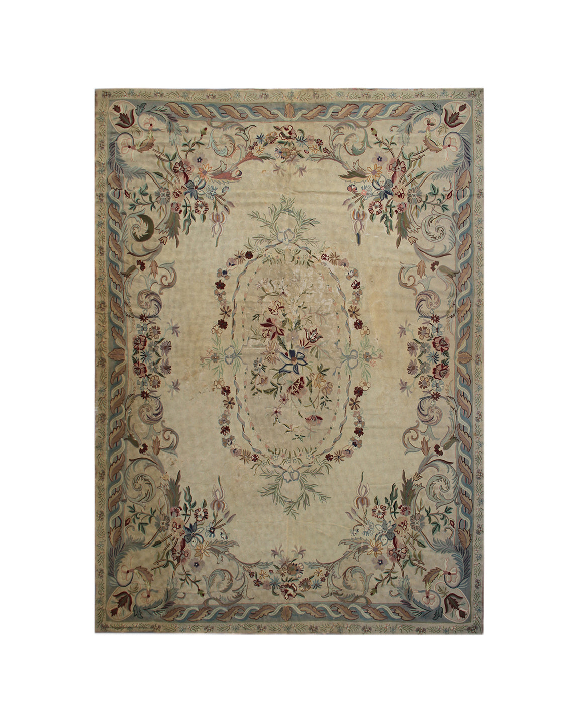 11'x14' Vintage Chain Stitched Area Rug | Aubusson Design