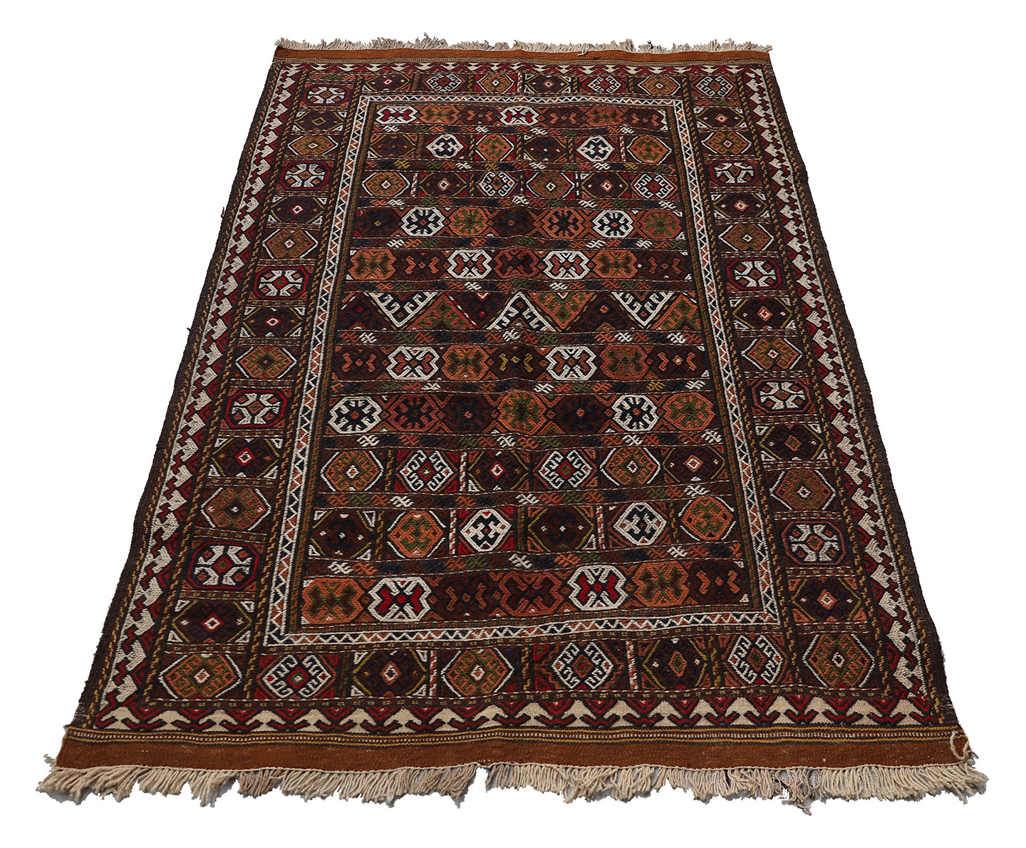 4x6 Vintage Persian Kurdish Soumak Kilim | Earthtone Geometric Tribal Rug