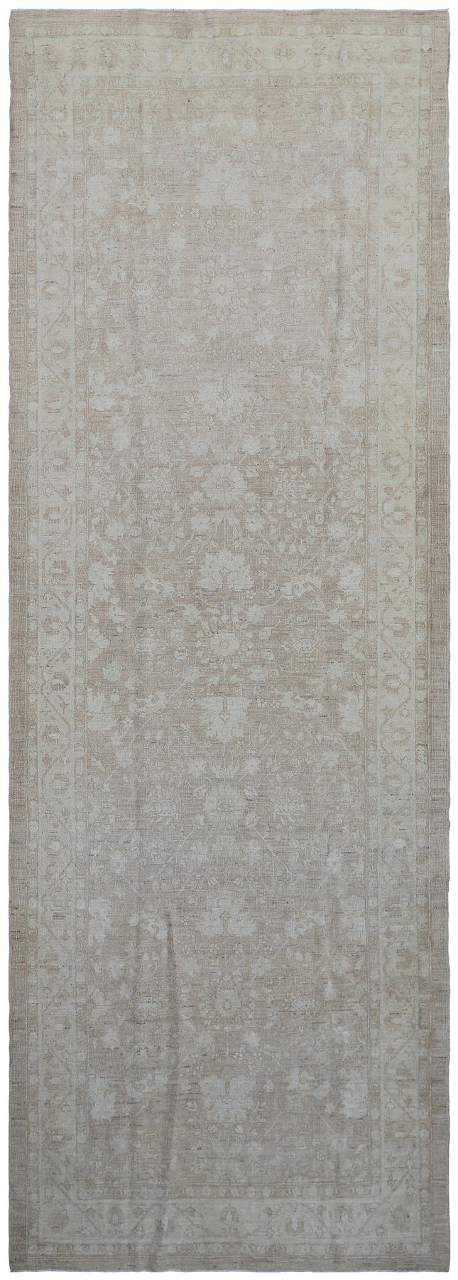 This one-of-a-kind Afghan hand-knotted runner from the Ariana Vintage Collection is a stunning fusion of old-world technique and modern aesthetic. Featuring a Persian Haji Jalili Design motif in a rare pale brown palette, this rug is crafted entirely by Afghan women weavers using organic hand-spun wool and a natural cotton foundation.