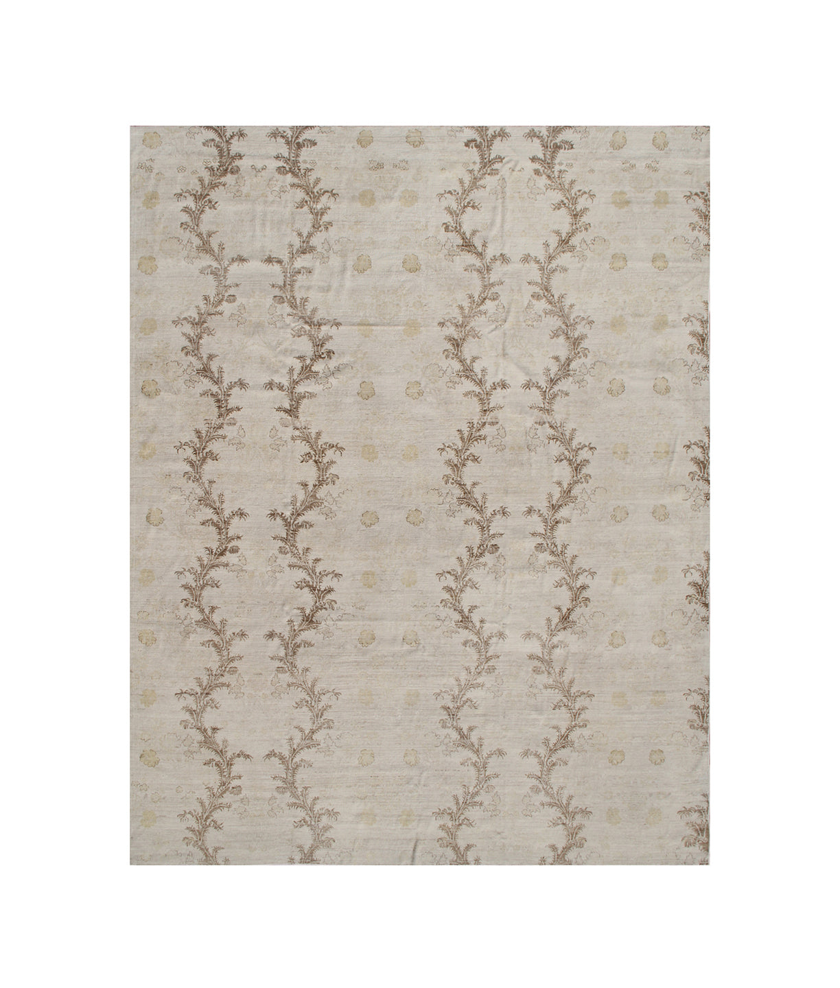 An elegant French Chinoiserie-inspired floral rug, hand-knotted in Afghanistan using organic wool and silk.