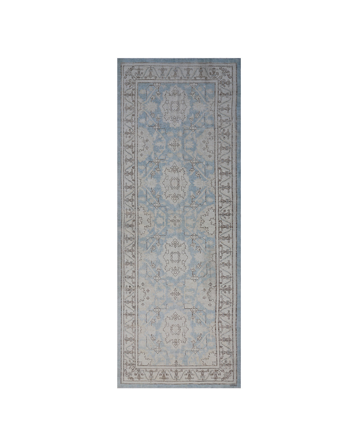 Ariana Traditional Agra 505 Design. Blue Ivory Brown Colors. Hand-knotted in Afghanistan. Hallway Runner Rug.