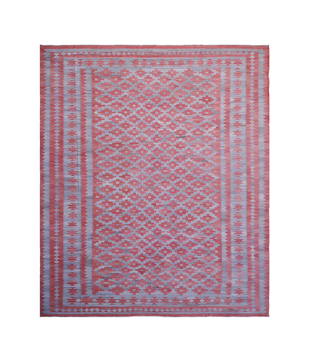 Authenticity meets modern elegance in this handwoven Afghan kilim, created by Turkman women artisans using organic, hand-spun wool. With a geometric Maimana design in colorful grey and rich terracotta, this flatweave rug brings heritage and harmony to contemporary spaces.