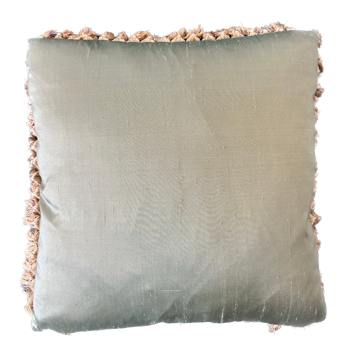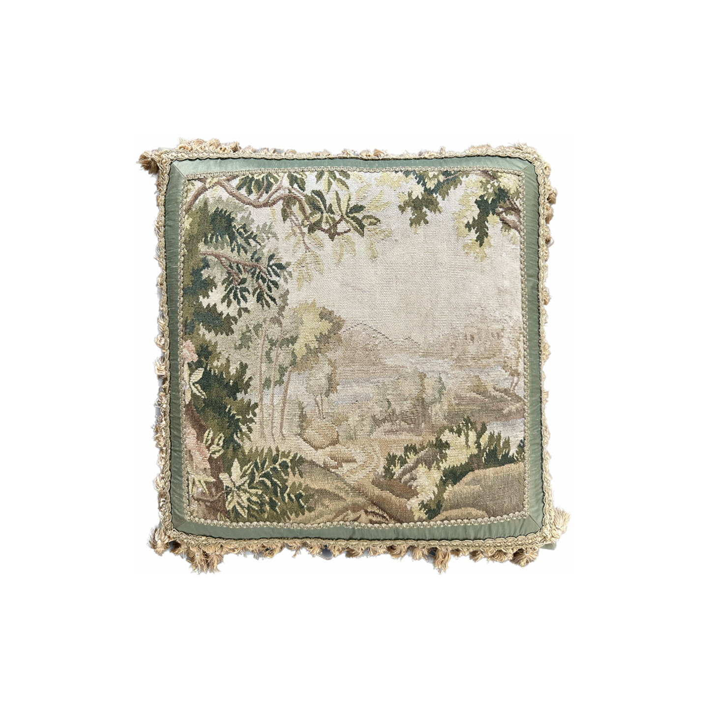 20" x 20" Green Floral & Nature Aubusson Pillowcase | Silk & Wool with Golden Brown Tassels