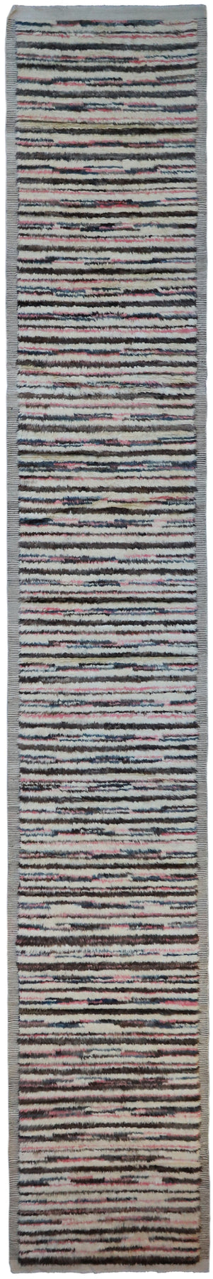Elevate your home decor with our contemporary Moroccan runner rug. This stunning rug boasts a cream color palette with chic stripes, adding a touch of modern elegance to your hallways. Crafted with long wool piles, it's not just stylish but also irresistibly soft to the touch, creating a cozy and welcoming atmosphere in your home. The contemporary Moroccan design is a perfect fusion of style and comfort, making it an ideal addition to your hallway decor.