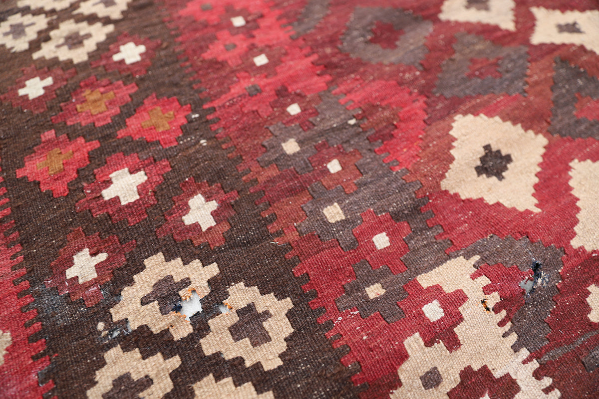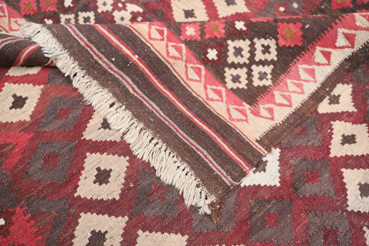 Bring warmth and character to your space with this earth-tone Maimana kilim, beautifully handwoven with bold geometric patterns. Add this one-of-a-kind Afghan flatweave to your home today and elevate your décor instantly!