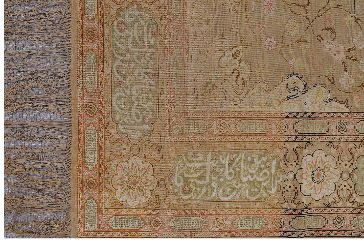The seldom-seen border features poetry, a historically significant representation of old world calligraphy. This once-iconic symbol complements the versatile size and colorways of the rug, making it a rejuvenating addition to any setting. Immerse your space in the rich history and timeless elegance embodied by this exceptional Kayseri ( Qaisery/ Kaisery ) rug.