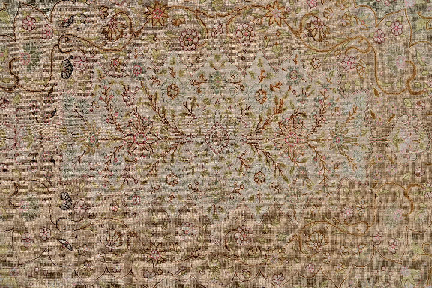 6'x9' Antique Kayseri Green Beige Silk Rug with Medallion Field