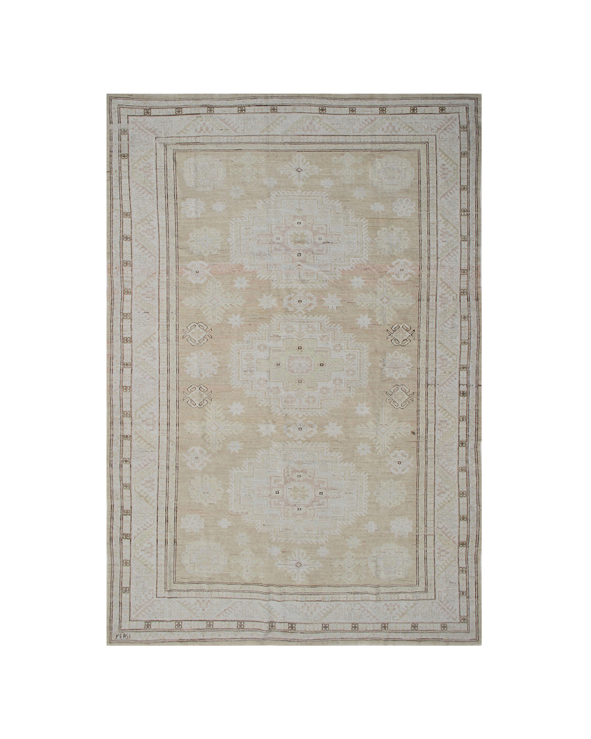 Crafted from organic hand-spun wool and set in a refined palette of terracotta, ivory, butter, and earthy brown, this piece brings warmth and grounded beauty to layered interiors. The geometric Caucasian pattern adds structure and story—making it as timeless as it is versatile.