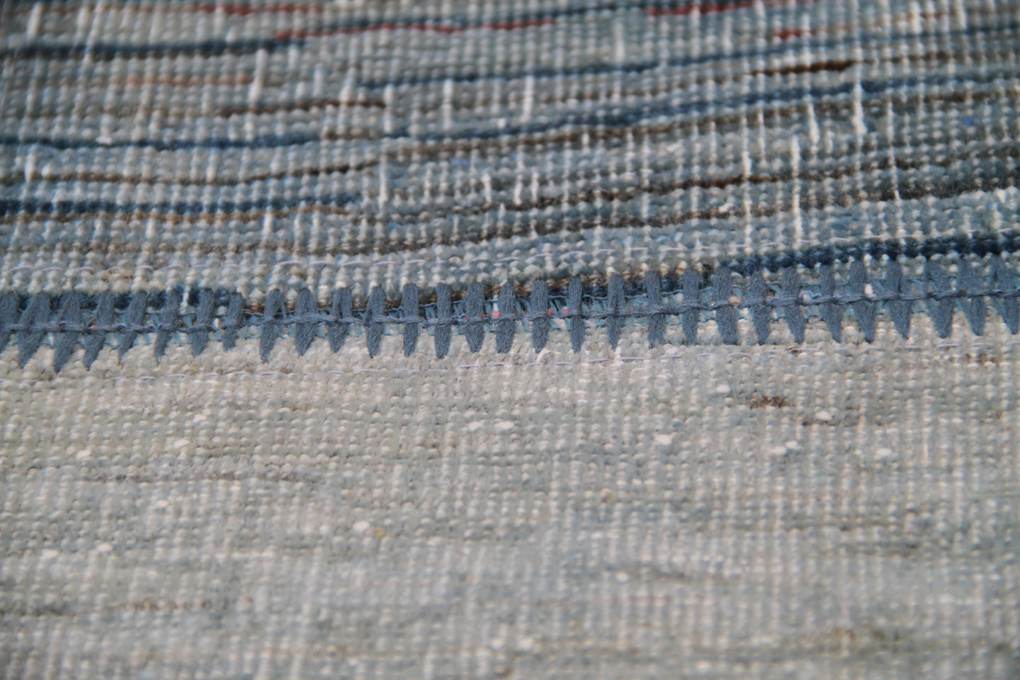 Our stunning light blue and gray Patchwork Rug, a true work of art. This hand-knotted masterpiece is crafted from meticulously repurposed rugs, creating a unique patchwork design that exudes character and charm. The blue and gray hues adds a soft color to any room, instantly transforming your space. Made from high-quality wool, it's not just beautiful but also soft to the touch. Elevate your home decor with this one-of-a-kind rug that's sure to be a conversation piece.